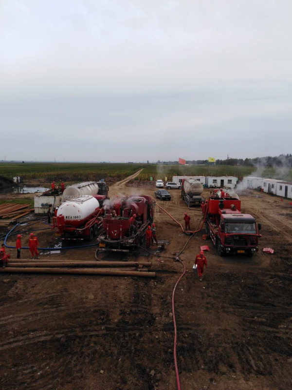 2018年8月23日,大慶市東油鉆采有限公司固井隊(duì)對(duì)這口井進(jìn)行完井固井施工。注灰低密度55方,原漿22.5方,替泥漿32.2方,水泥漿返出地面,施工**順利,一切正常,很圓滿(mǎn)。